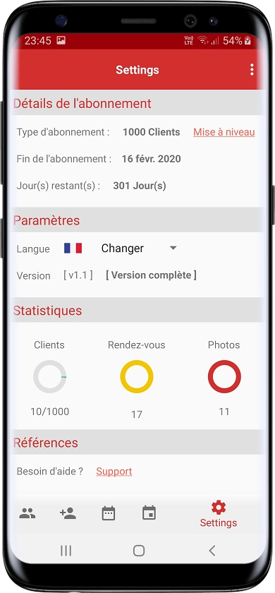 La version actuelle de MySalon est disponible en Français, Allemand et Anglais. Vers le mois de juillet 2019, les langues Italien et Espagnole seront disponibles dans une mise à jour.